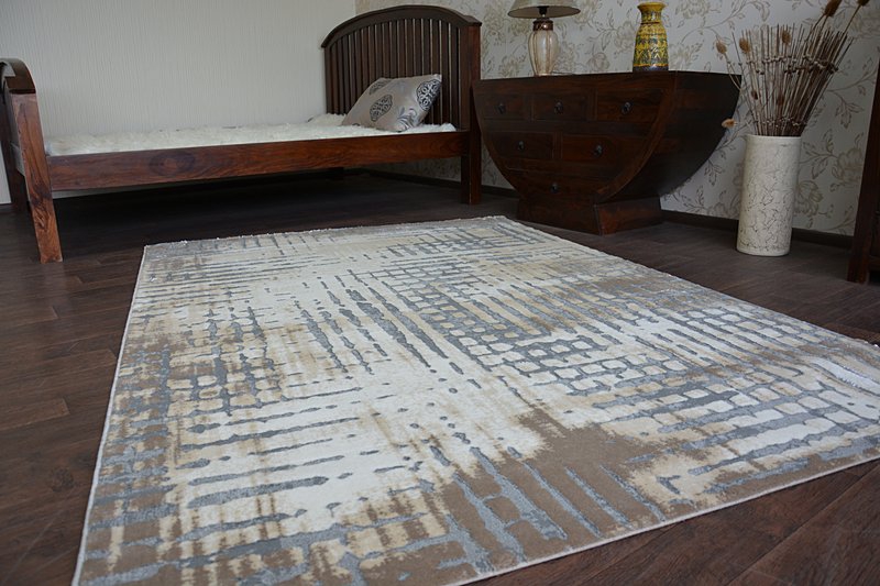 - alta calidad debido a los materiales utilizados – polipropileno con adición de poliéster. Ambas materias primas son químicamente resistentes, no permiten que el material coja humedad y son resistentes al desgaste, lo que significa, que el propietario de nuestra alfombra moderna podrá utilizarla durante mucho tiempo;